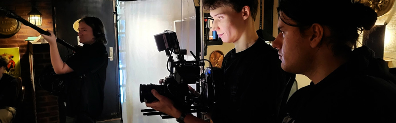 Elever og tidligere elever fra FilmMaskinens FGK-hold optager webserie i Frederikshavn
